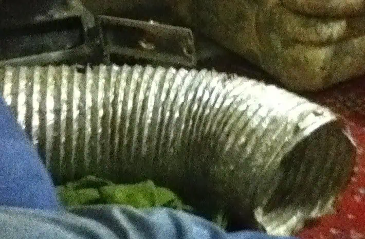 Next to the wood burner was a large silver pipe, with plenty of holes in it.
